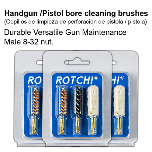 Conjunto 3 em 1 de escova para limpeza de furo de espingarda, blister e embalagem de cartão. Disponível