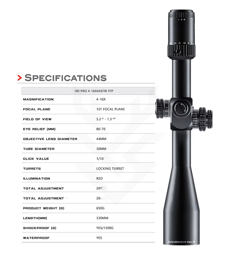 Óptica hd pro 4-16x44 sfir ffp alta resistência ao choque escopo de caça tático tiro de longo alcance tubo de 30mm