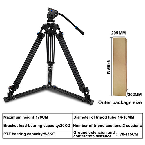 Tripé de filmadora de vídeo resistente profissional OEM ODM com cabeça fluida
