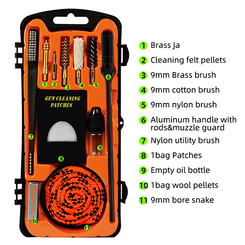 Kit de limpeza para espingarda, estojo laranja de tamanho grande